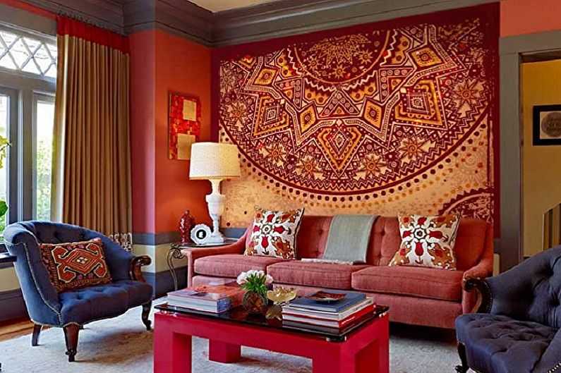 Орнаменты – способны превосходно декорировать комнату, не привлекая к себе чрезмерного внимания. Замысловатые узоры присущи интерьерам, оформленным в этнических направлениях, а также в строгих стилях.