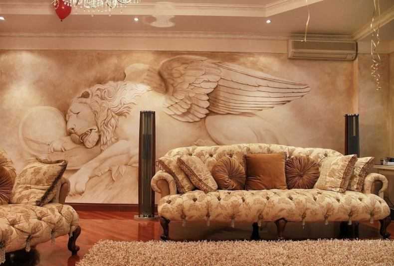 Помещение должно идеально подходить под фреску, только тогда результат будет оправдывать ожидания владельца. Это могут быть помещение в офисе, дом, большая резиденция или усадьба, квартира.