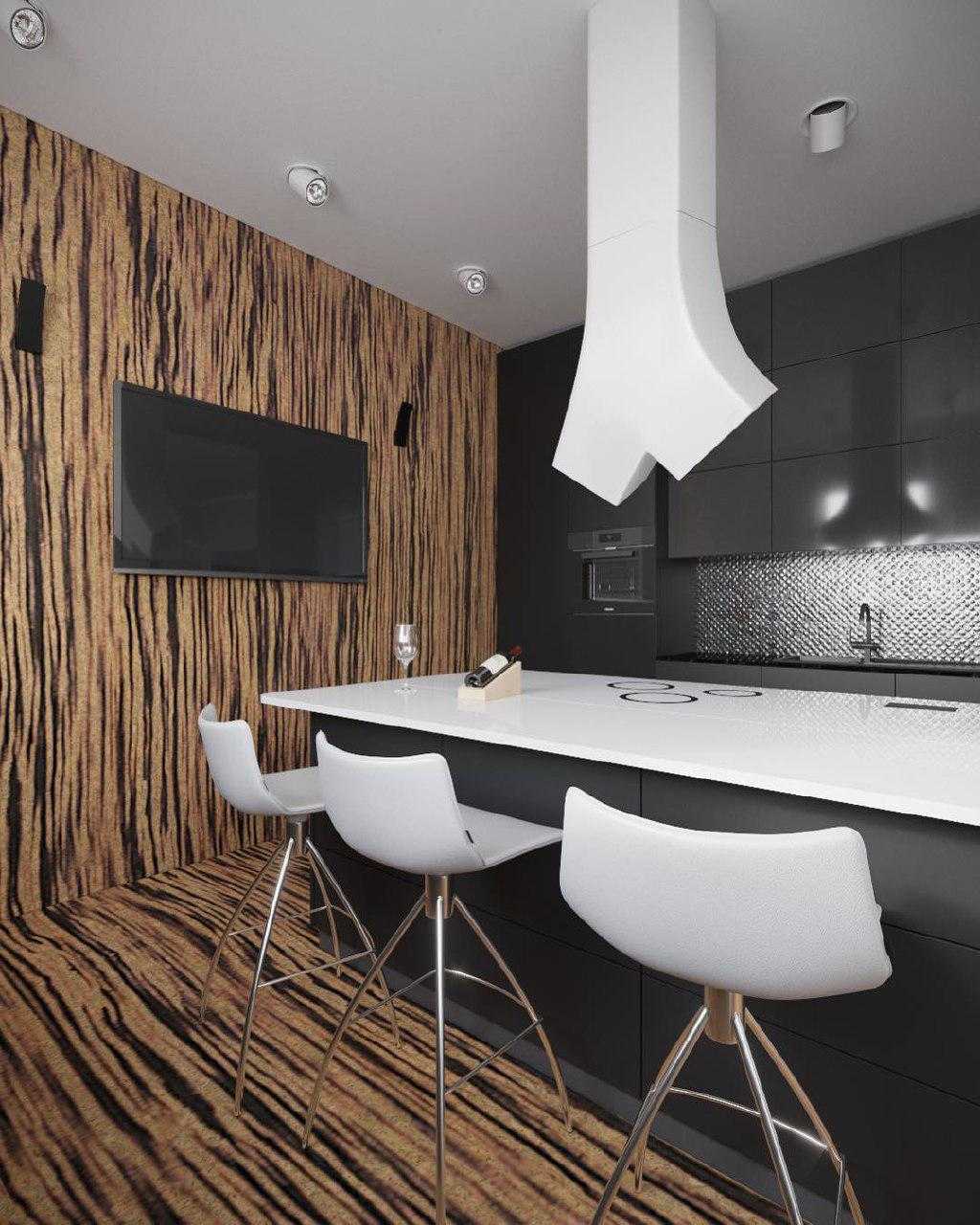 Разделение зоны отдыха и кухни при помощи барной стойки