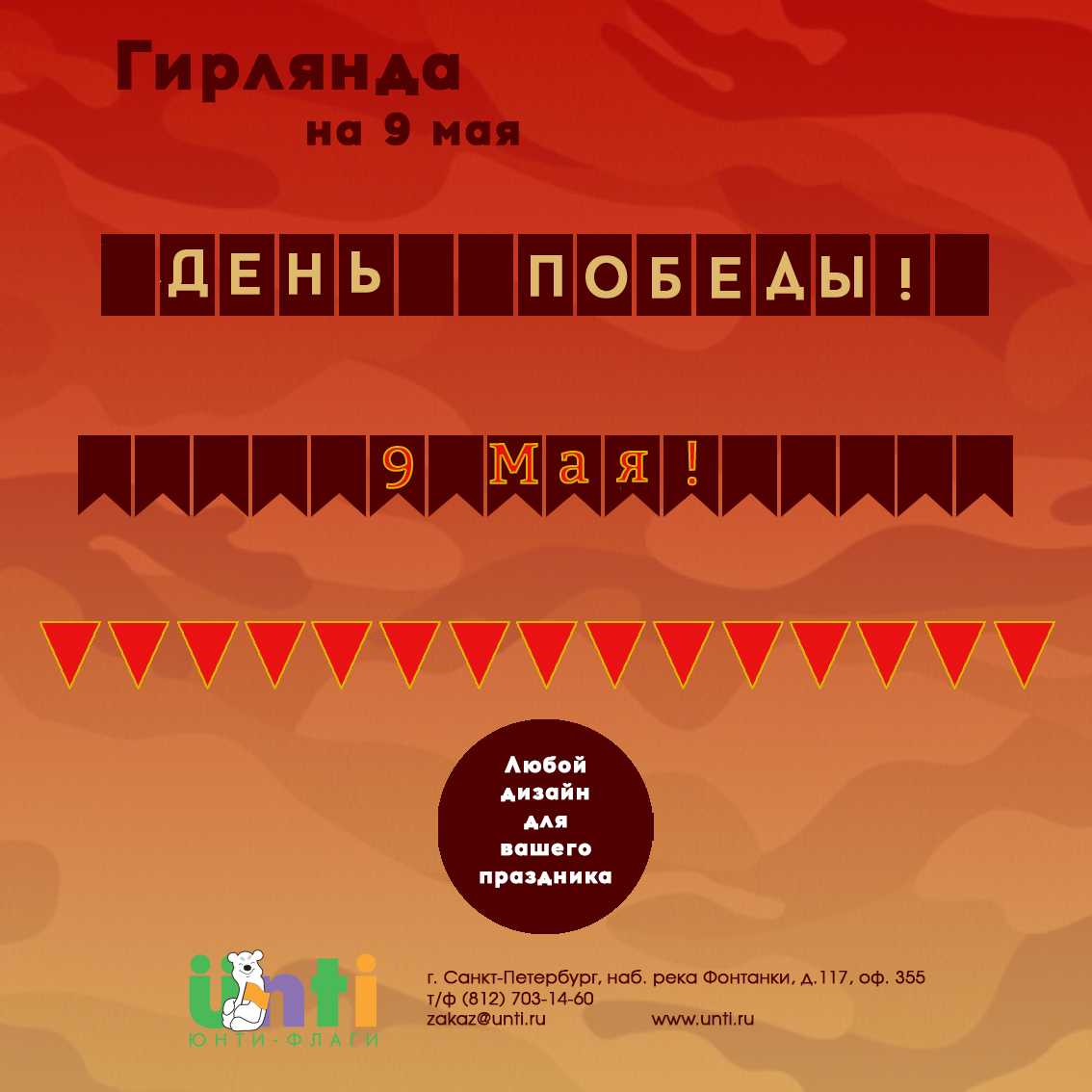 Гирлянду из флажков купить готовую или заказать со своим принтом можете у нас.