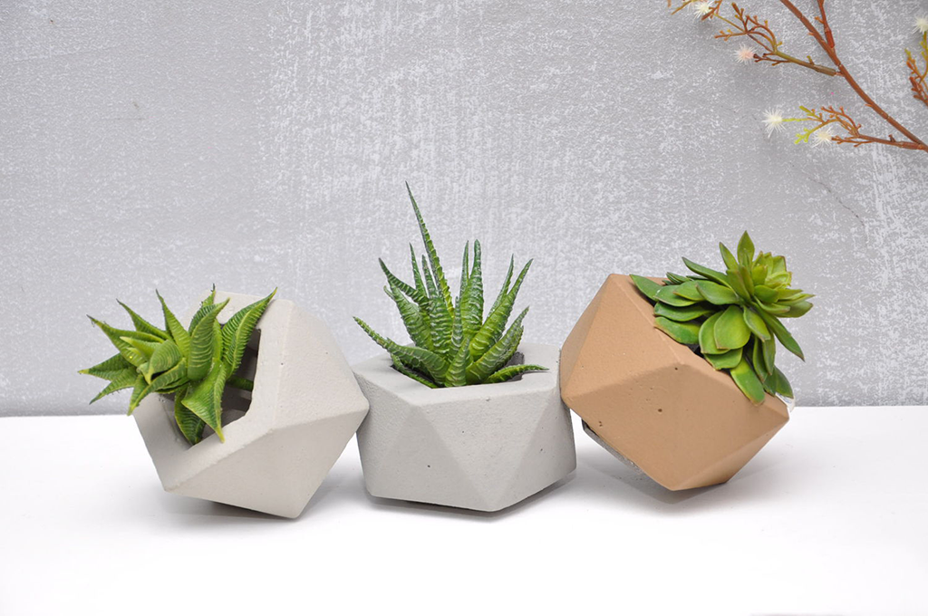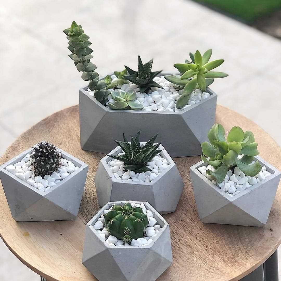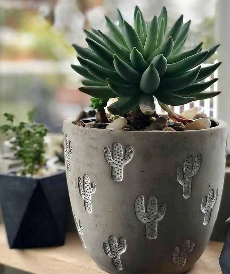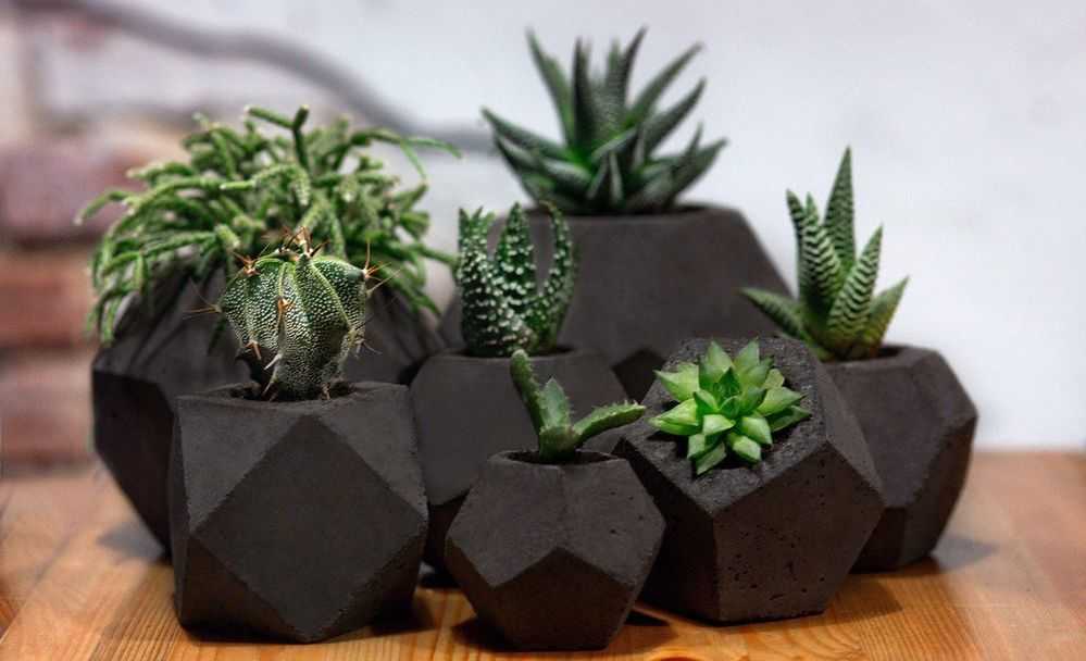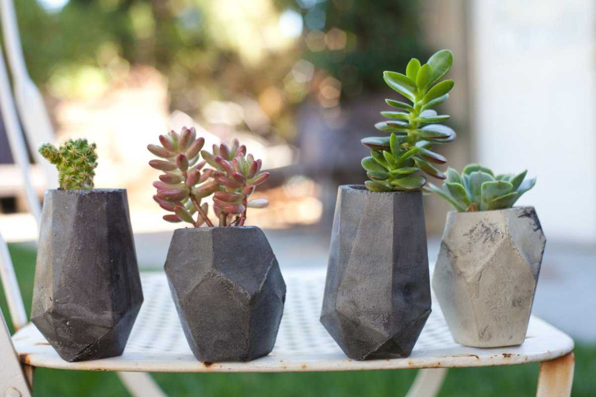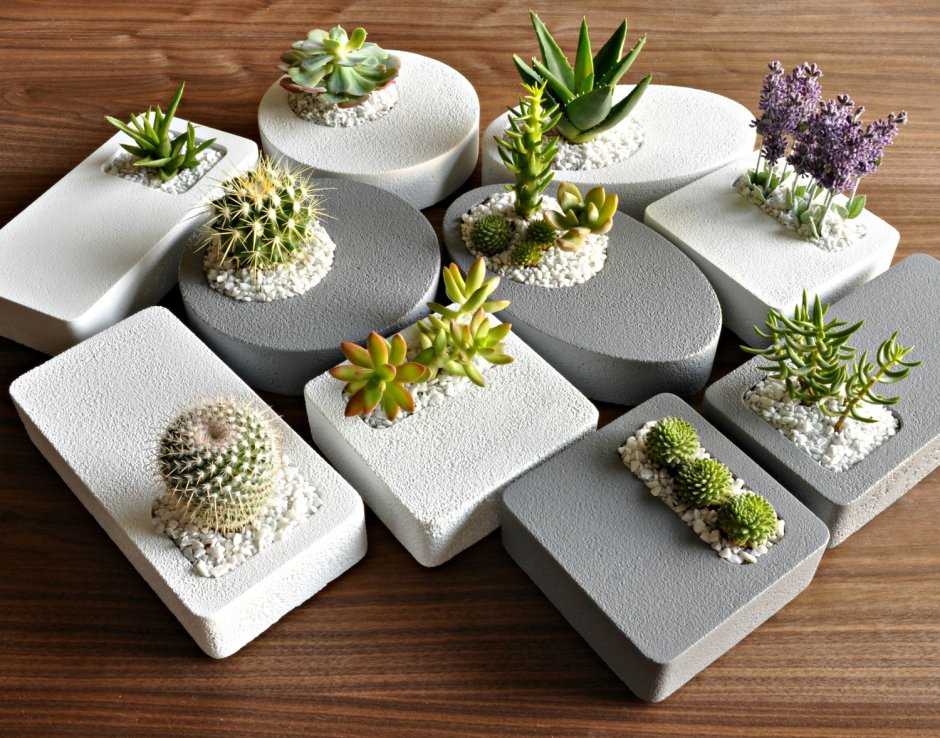 Прекрасным дополнением интерьера станут бетонные горшки или сделанные из камня. Бетон является очень прочным строительным материалом, его используют цветоводы для выращивания кактусов и суккулентов. Из бетона можно сделать своими руками горшки для растений, которые удивят разнообразием форм.