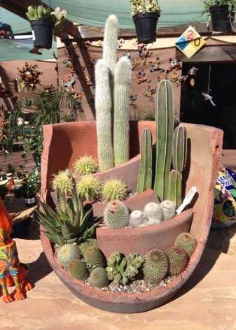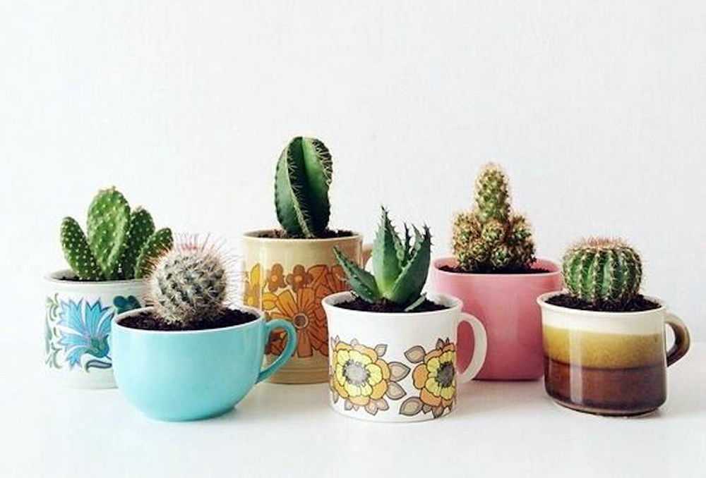 Люди с развитой фантазией приспосабливают под горшки для кактусов самые неожиданные предметы: старые кастрюли и лейки, надколотые чашки и супницы, плафоны и даже игрушечные грузовики.