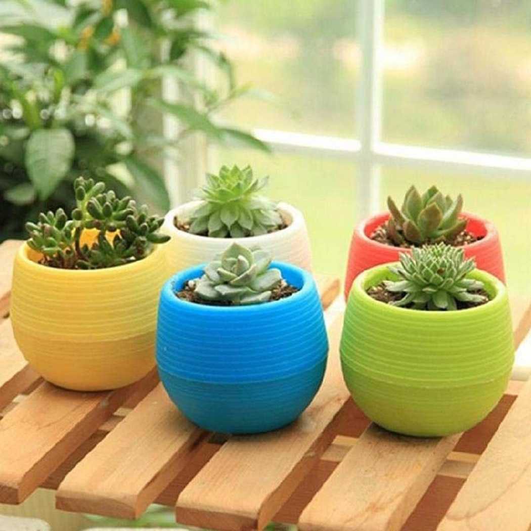Для низкорослых суккулентных цветов могут сгодиться и пластмассовые горшочки. Преимущество пластмассовых изделий в их легкости, многообразии форм и расцветок.