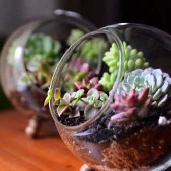 Круглые стеклянные горшки для живописных суккулентов набирают особую популярность. Крохотные, яркие суккулентные цветы, помещенные в стеклянные горшки, будут смотреться уникально и необычно.