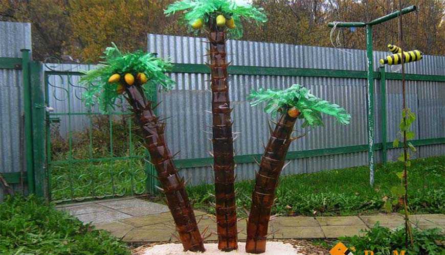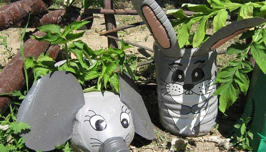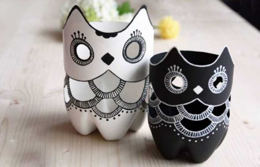На даче «на скорую руку» легко соорудить поделки из пластиковых бутылок в виде импровизированного умывальника, подвесив полную бутылку вверх дном. Стоит немного открутить крышку, и небольшой поток воды поможет умыться и помыть руки. Также стоит сделать лавочку и организовать освещение с красивыми совами или гномами их пластика. Любой садовый декор для вдохновения – на интересных иллюстрациях.