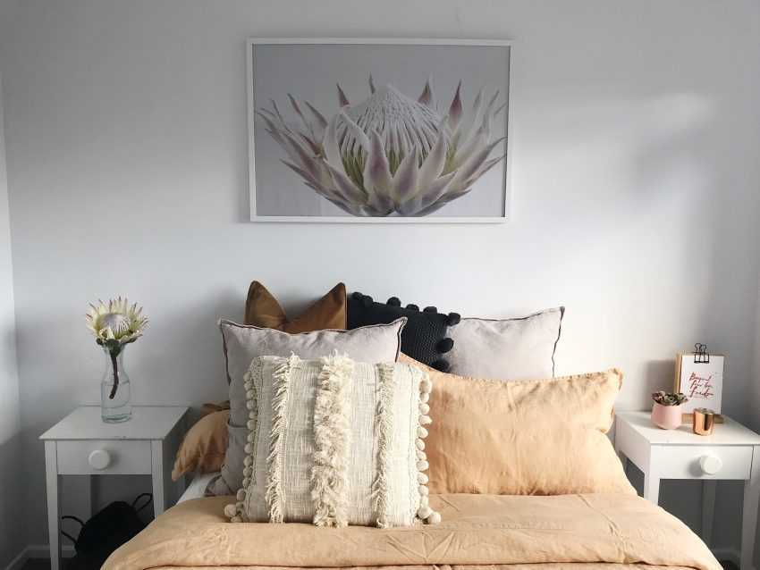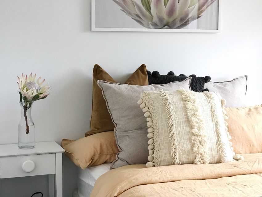 Или ковёр надо было оставить? Неблагодарное это дело пытаться исправить чужие ошибки, лучше их сразу не совершать. Чтобы добавить в спальню цветов или аксессуаров, нужно обладать полной уверенностью в их необходимости.