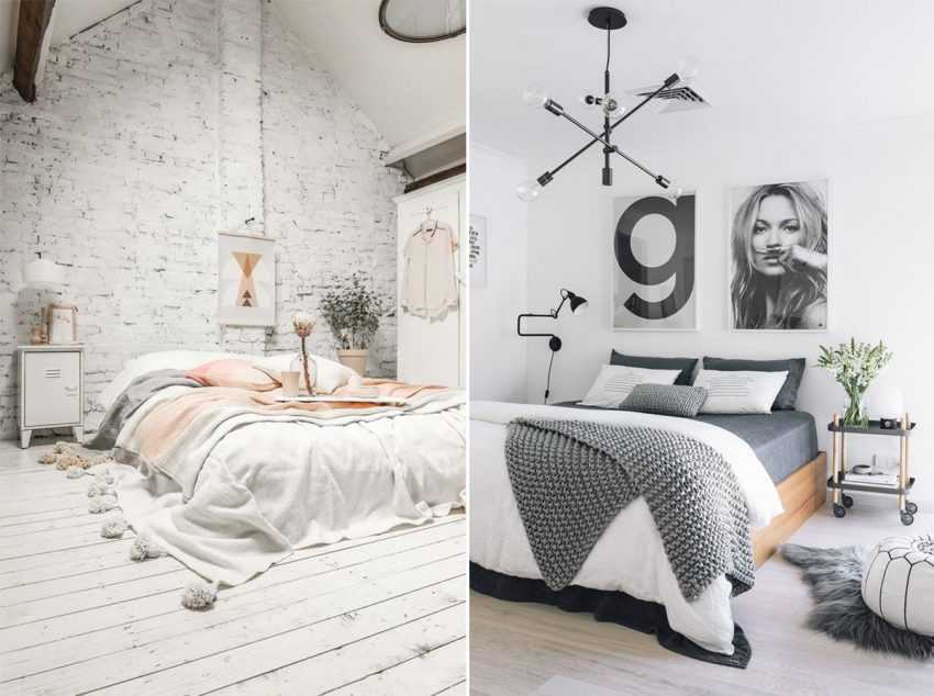 Другим весьма примечательным стилем для больших помещений является лофт. Спальня, оформленная согласно этой концепции, включает в себя такой дизайнерский принт, как имитация кирпичной кладки на стенах, серый, белый и бежевый цвета с яркими акцентами на текстиле.