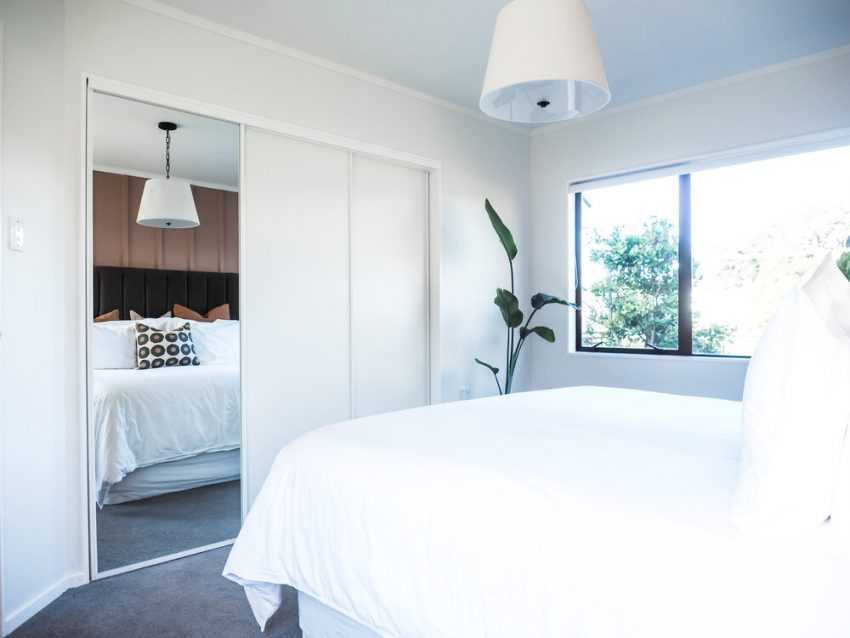 Чуть лучше, но всё равно не то. Вряд ли много смысла в попытках воскресить эту спальню — они пренебрегли всеми советами из этой статьи. Потолок не белый, фоновый цвет не нейтральный, так интерьеры не делаются. Белый неспроста так популярен