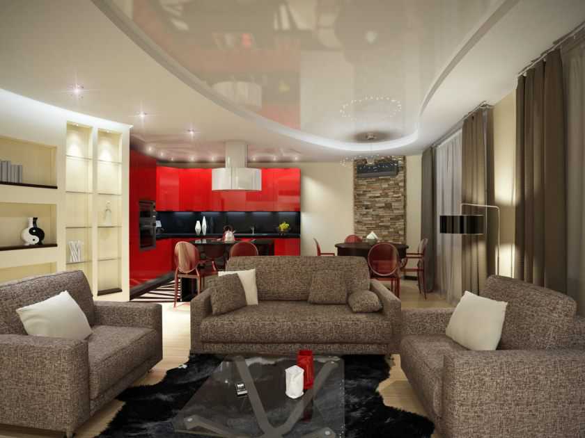 Если вы можете сделать перепланировку однокомнатной квартиры и превратить кухню и гостиную в одну комнату, не упускайте такую возможность! Открытая планировка кухни-гостиной всегда хорошо смотрится в современном интерьере. Зонирующим элементом в данном случае может выступать перегородка, диван, стол, люстра или даже материал для отделки пола или цветовые акценты.