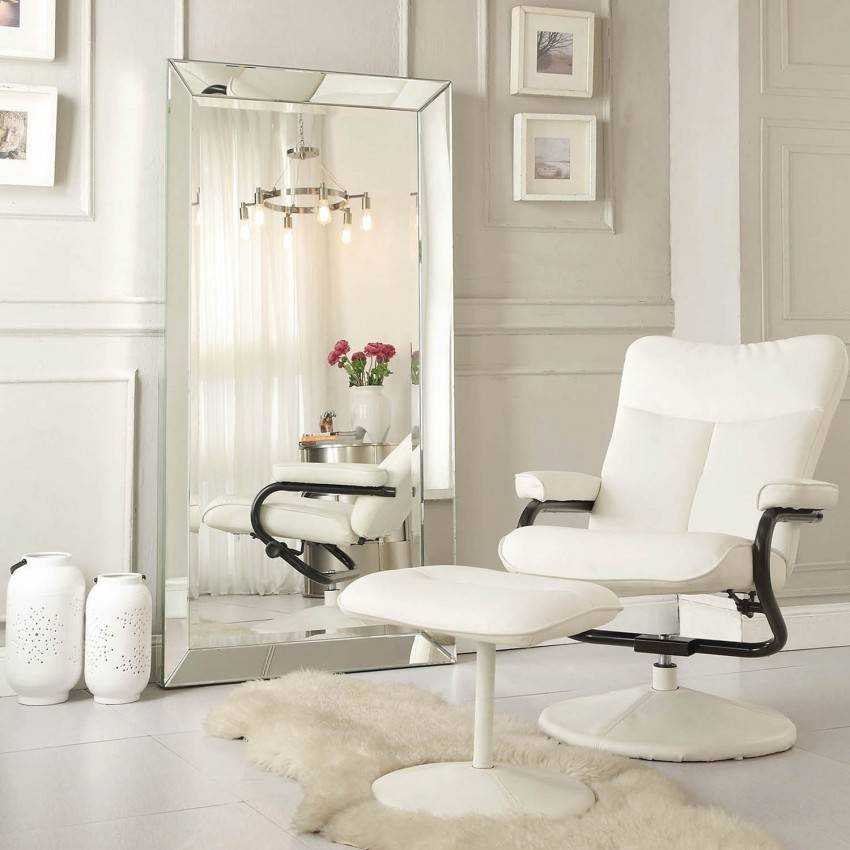 - Крупные напольные изделия в большинстве случаев помещаются в гардеробных. Они отражают человека в полный рост, позволяют экспериментировать со стильными образами. Некоторые модели дополняются колесиками для удобства перемещения по комнате. Пользуются популярностью угловые варианты, помогающие рассмотреть себя со всех сторон.
