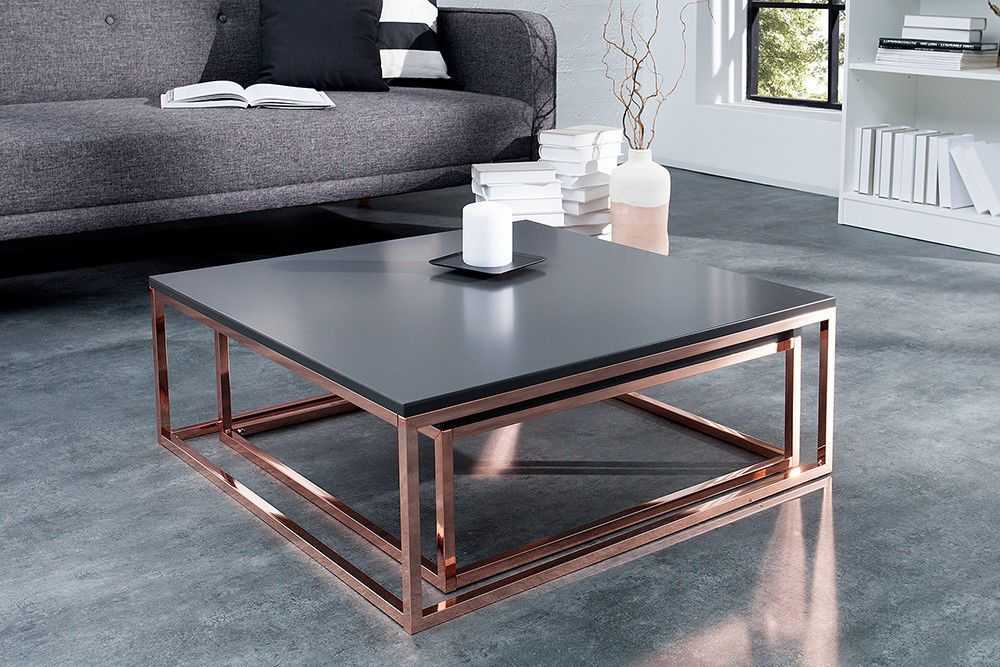 Простой металлический кофейный столик в виде прямоугольника может видоизменить атмосферу модного интерьера, особенно если сыграть на геометрических контрастах присутствующих в комнате элементов.