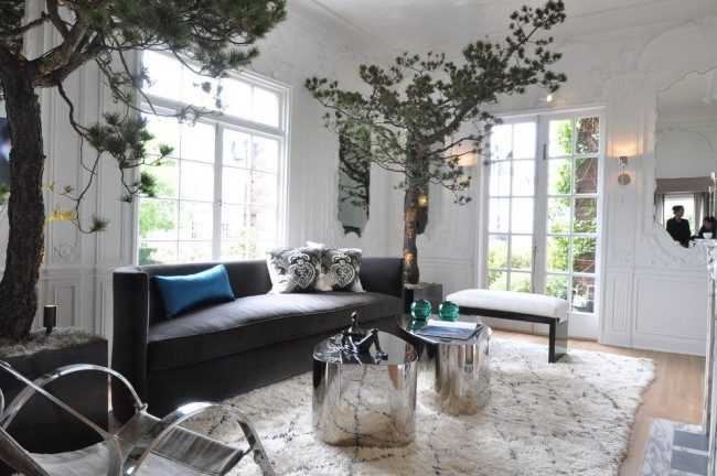 Набирают популярность кофейные столики, изготовленные из ствола натурального дерева. То есть частичка природы у вас в квартире и помогает создать эко-дизайн. Поскольку диаметр ствола чаще всего маленький, то гармонично смотрится ансамбль из нескольких предметов. Только при выборе такой модели необходимо учесть, что небольшие размеры сочетаются с большим весом. Поэтому для удобства эксплуатации выбирайте элементы на колесиках.