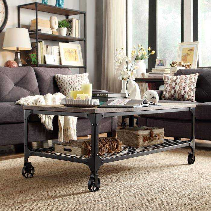 Примеры в интерьере журнальных столиков в стиле лофт.