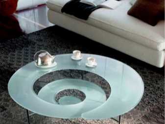 Монолитные из стекла: высокие свойства пластичности стекла позволяют выполнять и столешницу, и ее каркас как единое целое. Эффектно выглядят модели из прозрачного стекла, создавая ощущение легкости интерьера, а предметы, которые располагаются на поверхности, как будто парят. При разном освещении такие столики будут смотреться по-разному благодаря преломлению лучей света. На монолитных моделях из матового стекла менее заметны следы от прикосновения рук, царапины.
