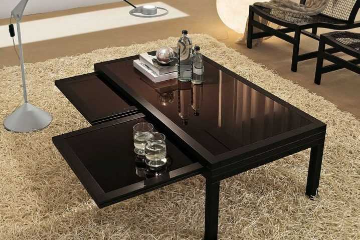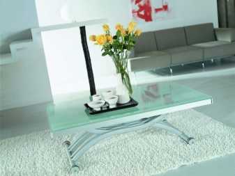 Журнальные столики из стекла способны выполнять много функций благодаря дополнительным механизмам. Существуют такие модели, как: