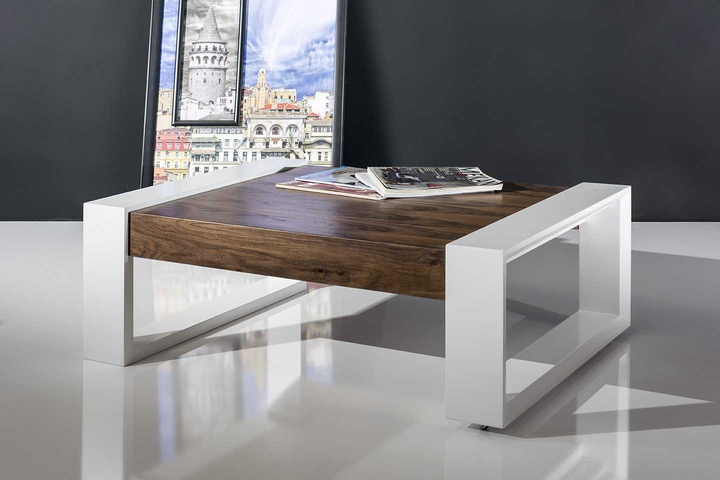 Журнальные и кофейные столики из дерева всегда были и будут классическим вариантом. Для просторной, светлой гостиной подойдет изделие, выполненное из цельной древесины или утонченного белого цвета. Новаторством в дизайне стала его высота, которая немного меньше привычных нам предметов мебели такой категории. Несмотря на визуальную массивность, пространство не кажется перегруженным.