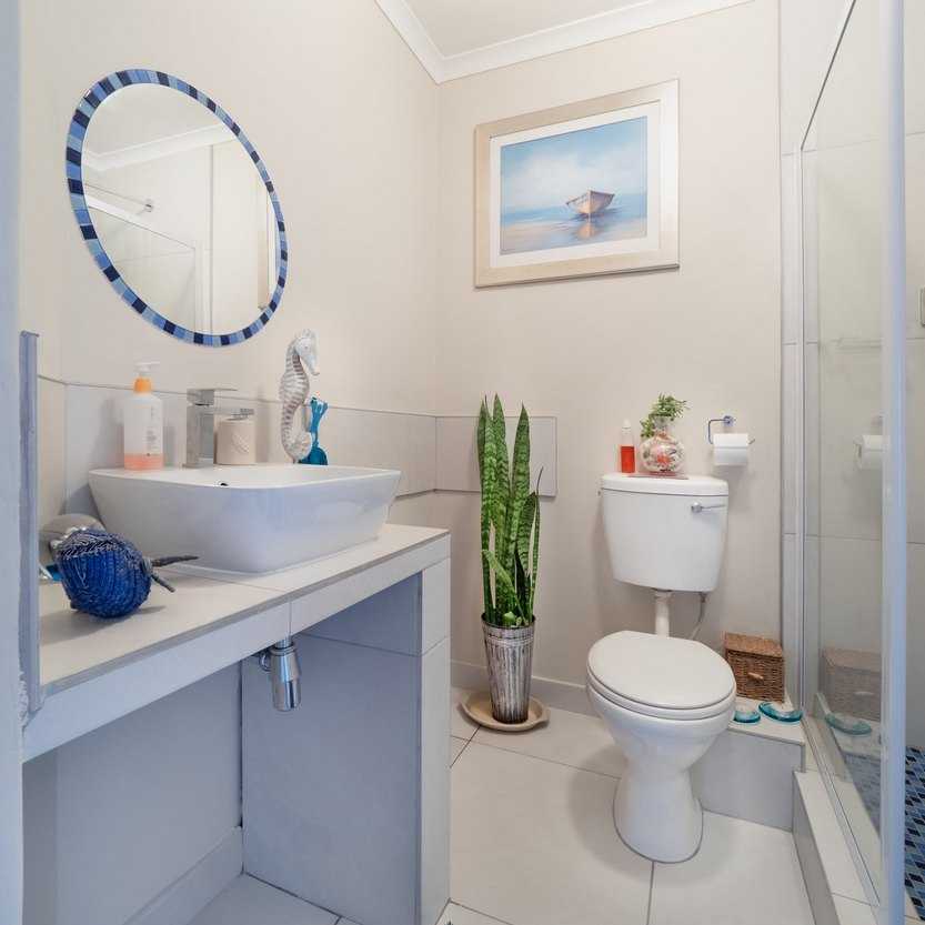 - Вместо шкафчиков для хранения чистящих и дезинфицирующих средств использовать нишу над туалетом.