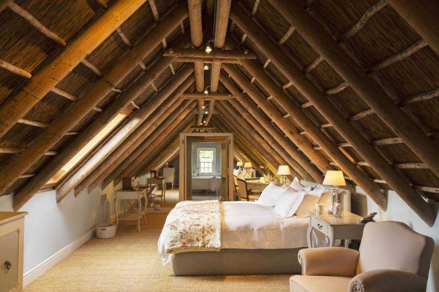Мансардный этаж для спальни — идеальный вариант. В спальне большую часть времени человек проводит в горизонтальном положении, что хорошо, если потолки недостаточно высокие и просторные.