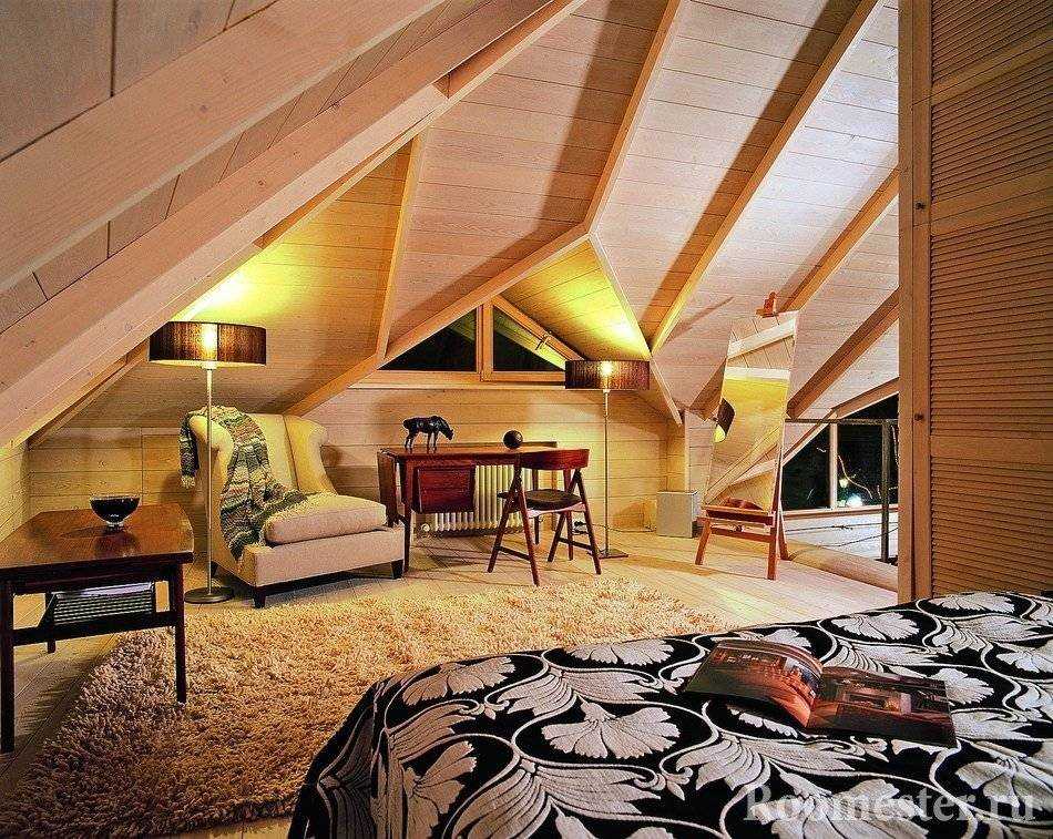 Наличие скошенных стен в чердачном помещении не только делают его оригинальным, но и создают некоторые сложности при организации просторного и комфортного жилого пространства