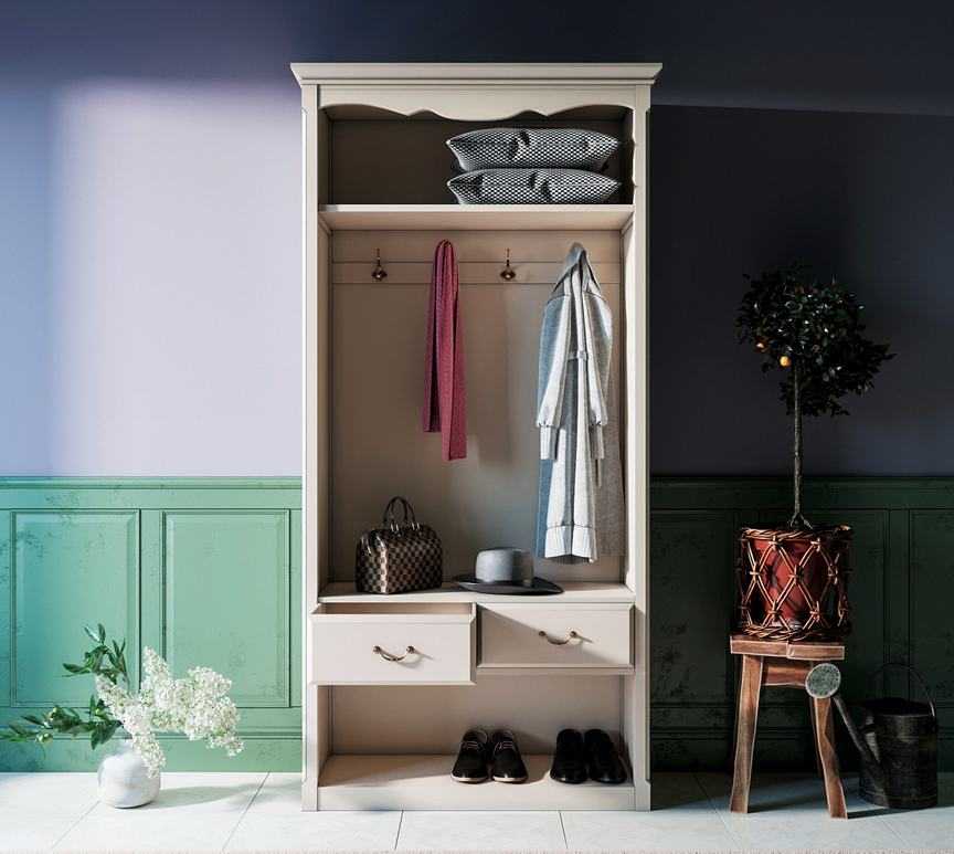 Шкаф-вешалка для прихожей, варианты с дополнительными нишами, вешалка в стиле минимализм