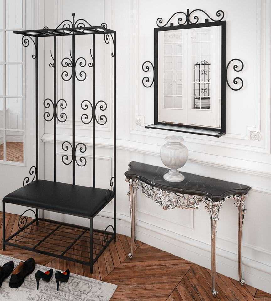 Кованая мебель всегда привлекает внимание. Даже обычная полка или стул вызывает положительные эмоции, а если мебель мастерски украшена, то такая прихожая будет иметь яркую индивидуальную внешность