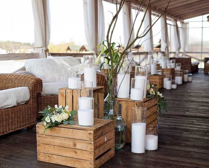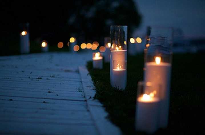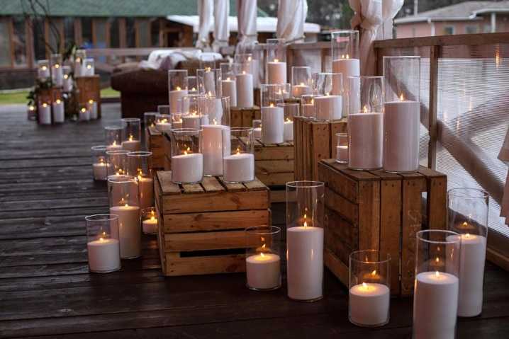 Чтобы создать неповторимую свадебную дорожку, можно расставить вдоль нее свечи в высоких прозрачных емкостях.