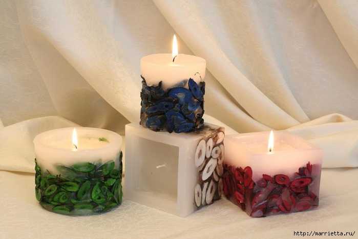 Белая свеча — это элегантно, но скучно. Естественно, возникает вопрос, чем окрасить парафин, чтоб получить яркие украшения интерьера.