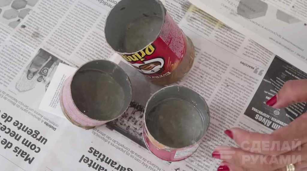Заливаем приготовленным раствором подготовленные формы и наклоняем их немного под углом. Предварительно их нужно смазать изнутри растительным маслом.