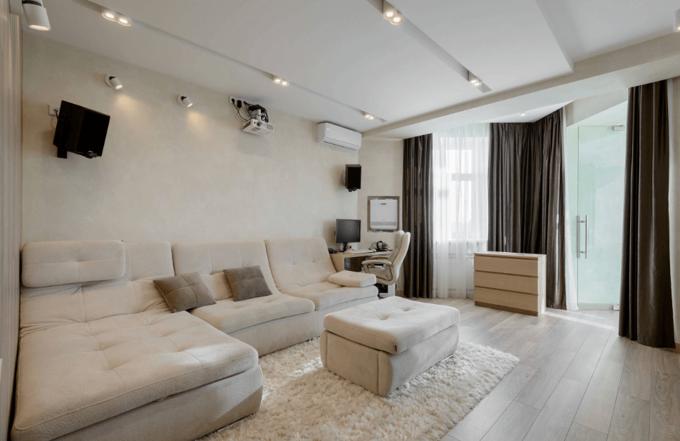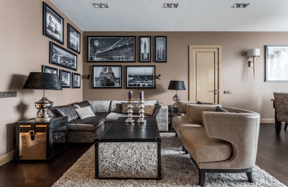- Их подбор всегда будет отталкиваться от уже выбранной для гостиной мебели, ее расцветок, степени освещенности помещения.
