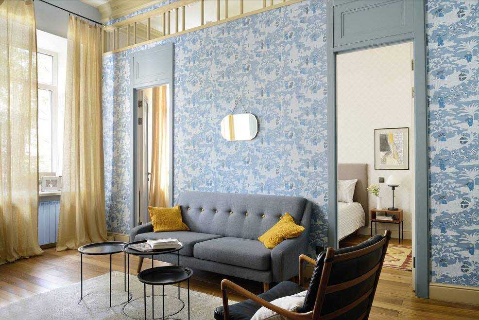 Комбинируя обои разных стилей, следите за тем, чтобы это визуально не уменьшало пространство.