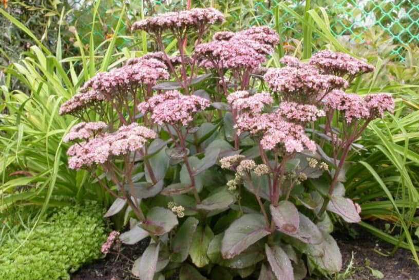 Портманс Прайд (Postman’s Pride) – эффектное растение около 60 см высотой с насыщенно-пурпурной окраской стеблей и листьев. Цветение нежно-розовое, начинается в сентябре.