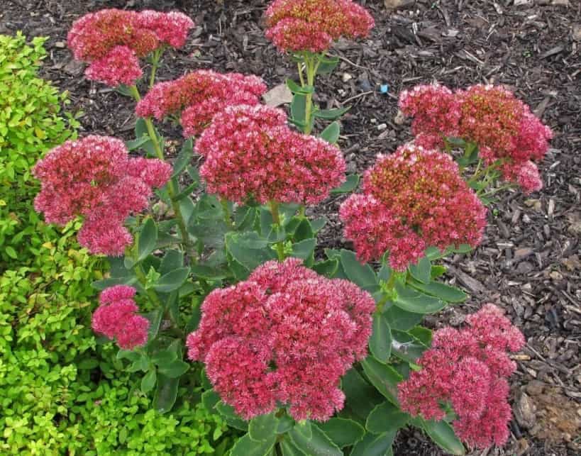 Септемберглют (Septemberglut) – название многолетника переводится как «сентябрьский огонь». Высокий суккулент с пагонами около 60 см, увенчанными в сентябре яркими темно-розовыми охапками соцветий.