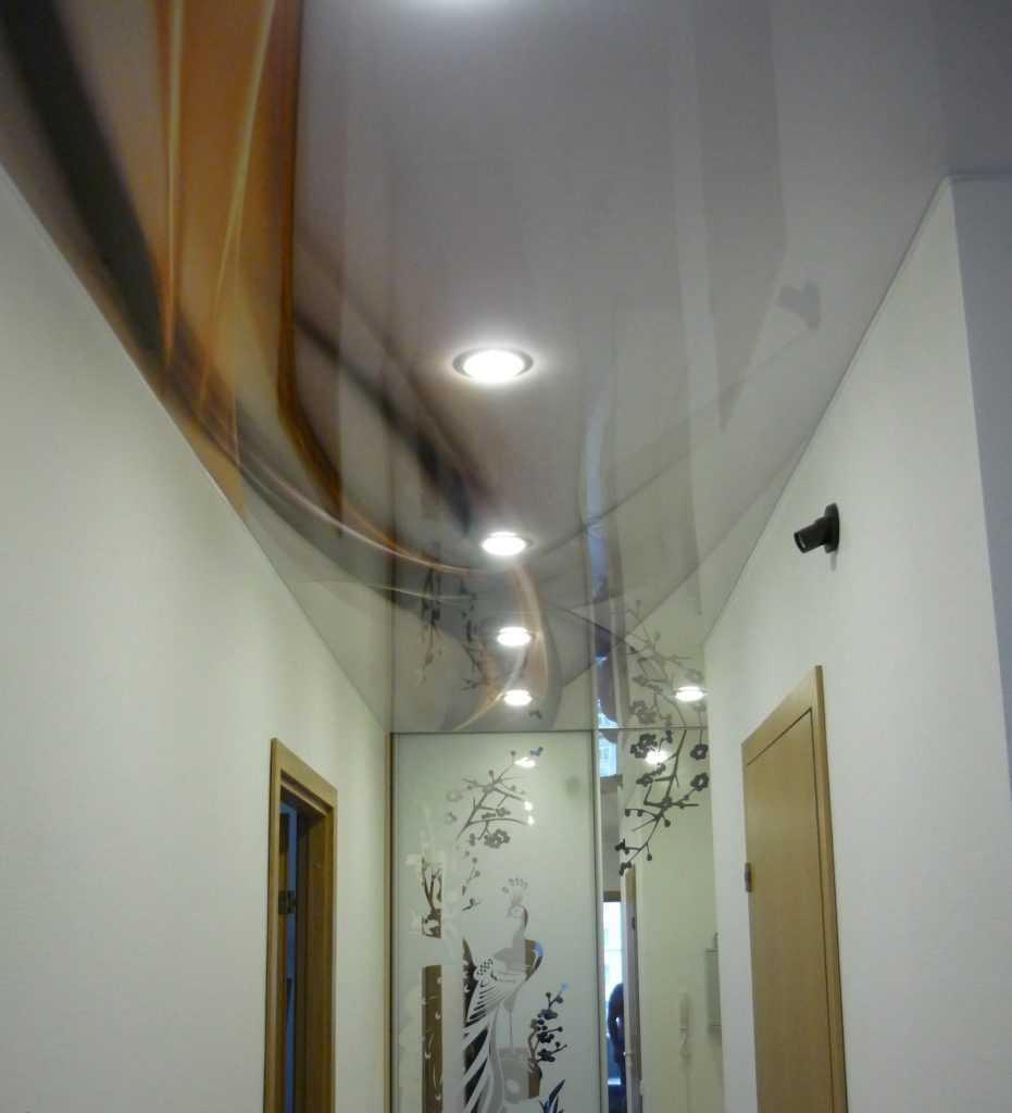 Светодиодное освещение в прихожей гармонично с натяжными или подвесными потолками, у которых есть зеркальный эффект. Продуктивность электричества повышается.