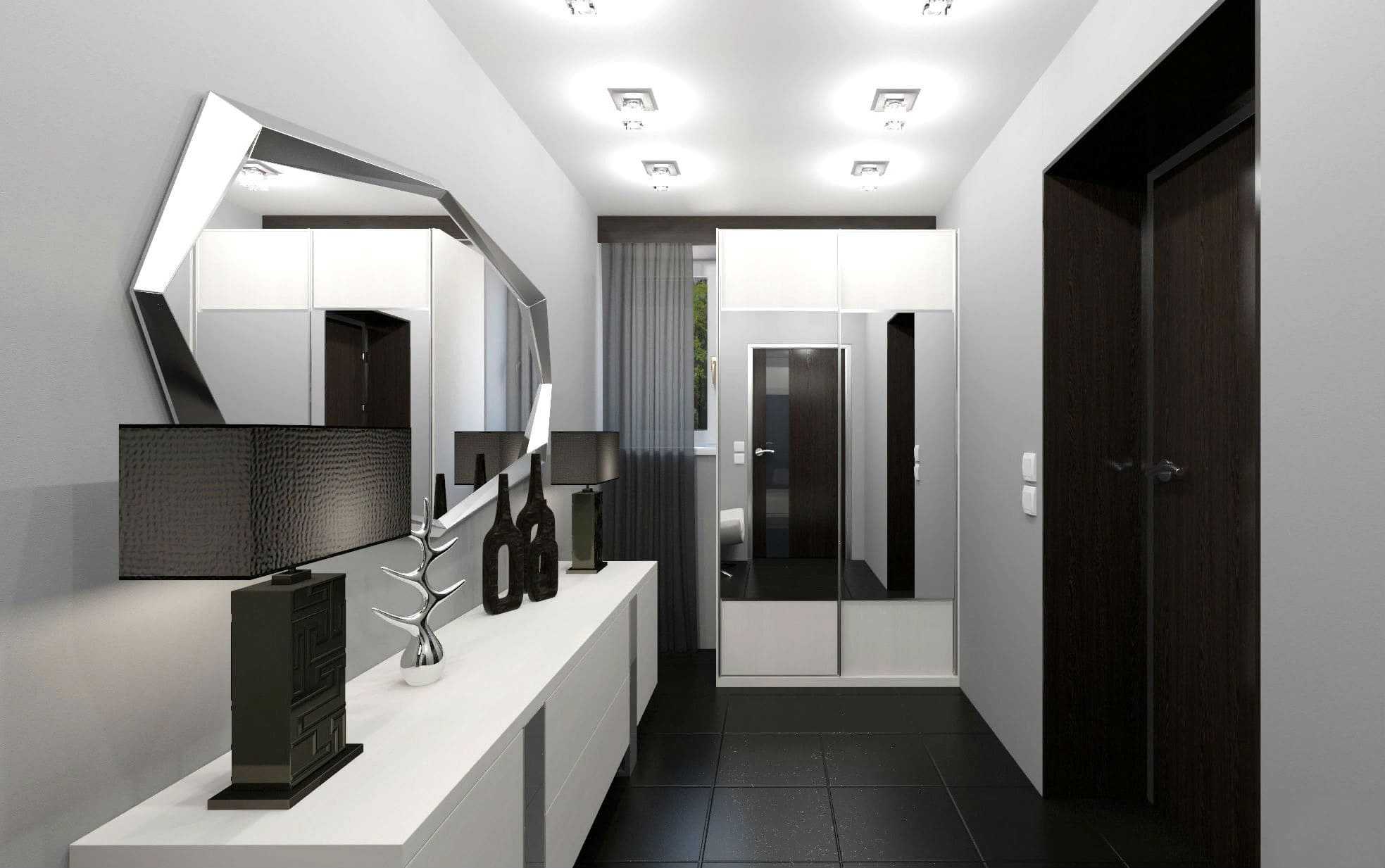При этом от большого зеркала рекомендуется отказаться. В противном случае есть вероятность удлинить коридор еще больше.