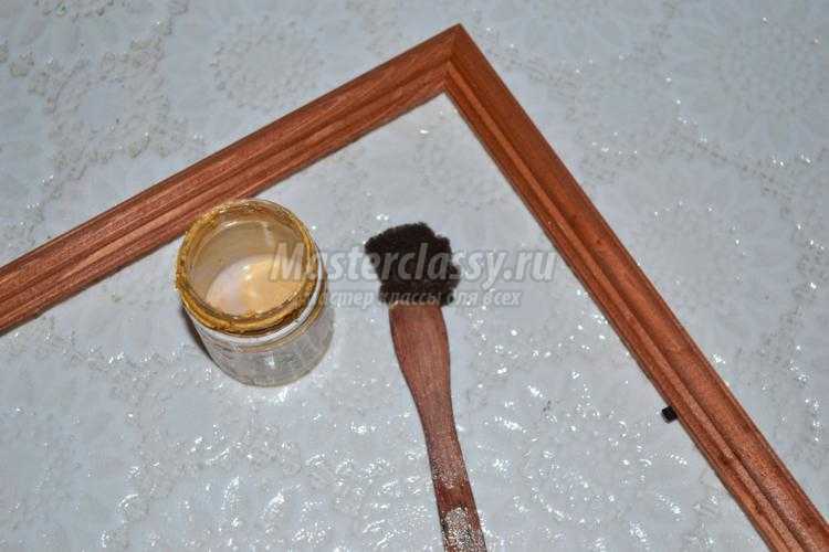 - На готовую рамку или вырезанную из картона и приклеенную на фанеру нанести слой клея.