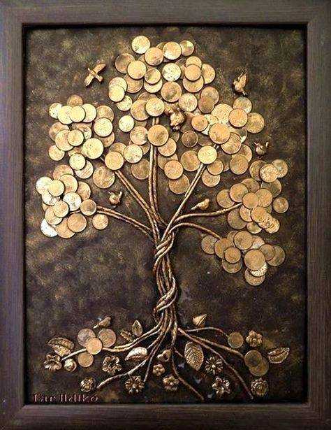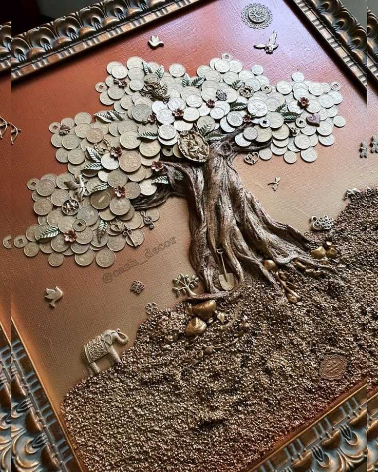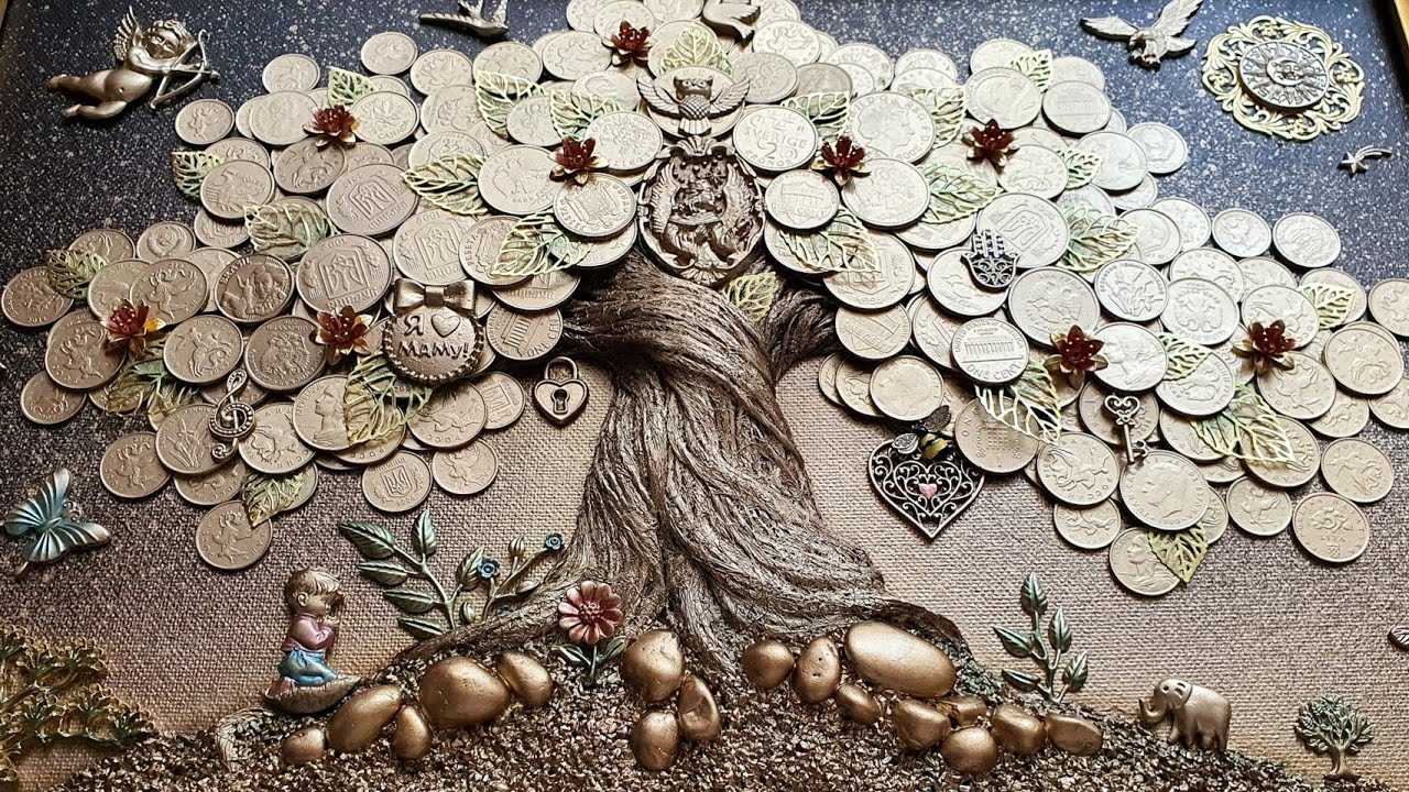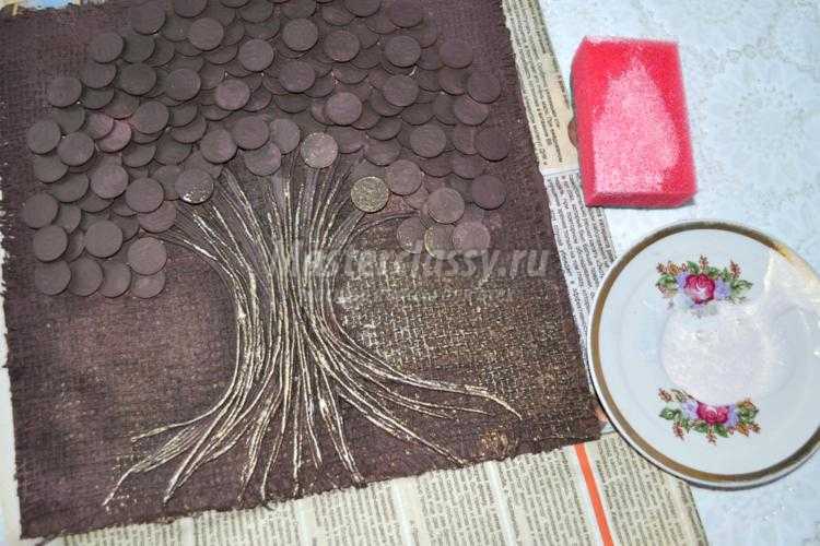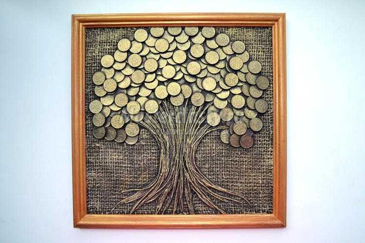 Панно из монет. Денежное дерево. Мастер-класс с пошаговыми фото