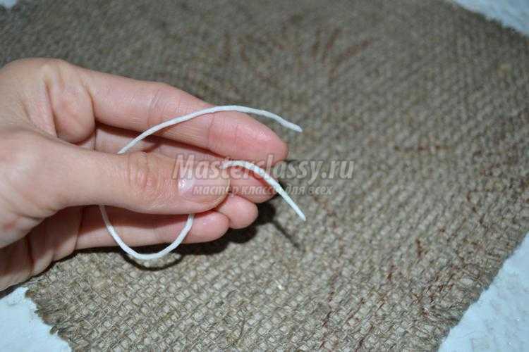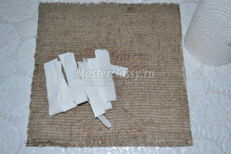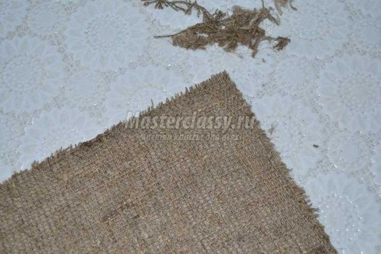 - Отрезать кусок мешковины размером чуть больше картонной заготовки. Проследить, чтобы ткань не имела посторонних включений, отверстий, неровностей и других дефектов.