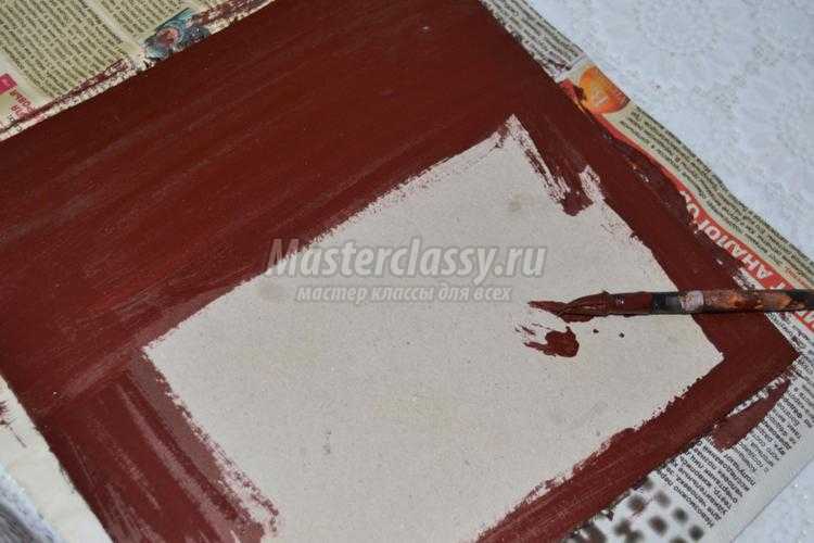 Может показаться, что работа завершена. Но стоит перевернутьизделие наизнанку, как сразу возникает желание взять в руки оставшуюся коричневуюкраску и покрасить задник картины.