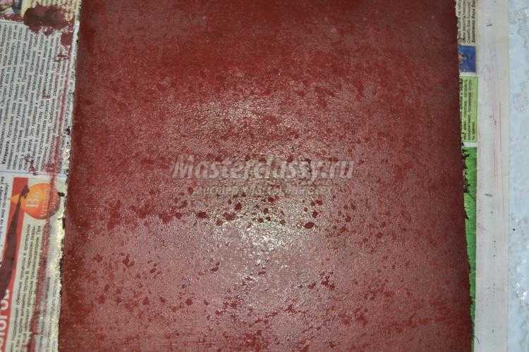 - Дать основанию высохнуть в течение нескольких часов. Чтобы картон не покоробило, сверху можно поставить груз.