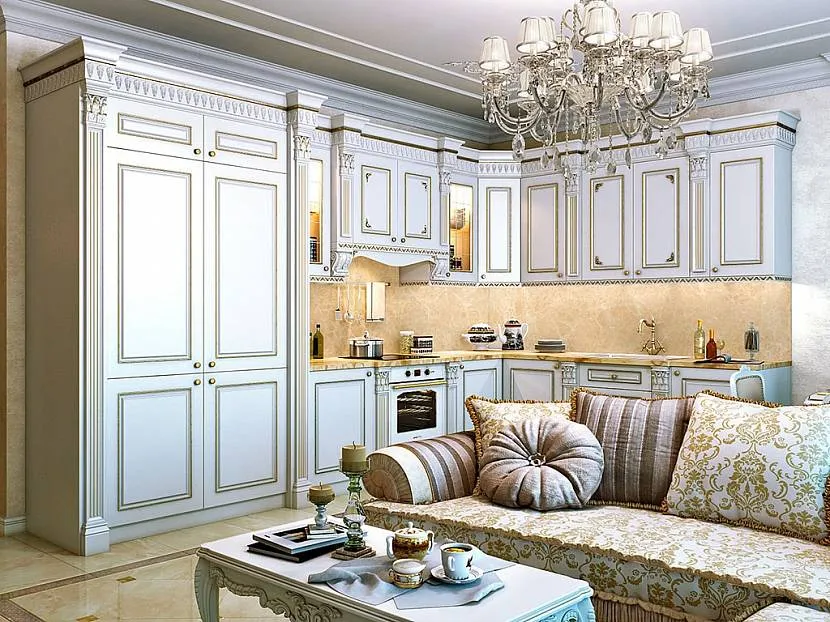 В классическом стиле оформляют все помещения квартиры: гостиную, кухню, столовую, спальню, даже балкон.