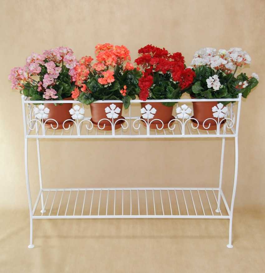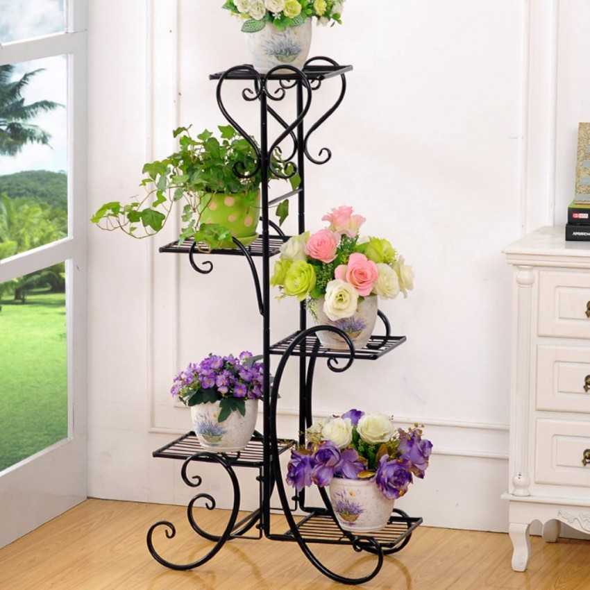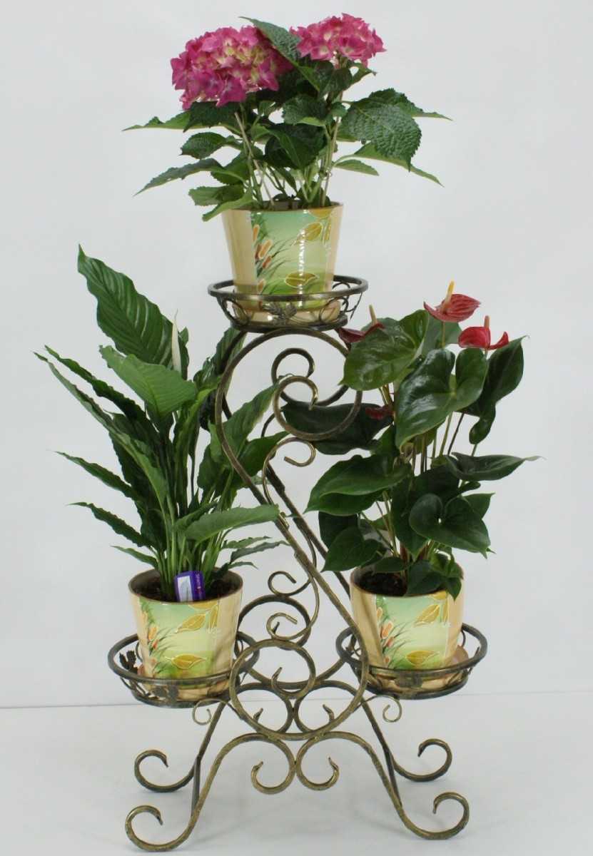 Напольные подставки для цветов имеют разнообразный вид и форму – очень высокие и совсем низкие, широкие и узенькие, в виде лесенки, клумбы или же многоярусных полок. Многоуровневые полочки приспособлены для группы цветов. Их размещают на разных ярусах, чтобы они не мешали друг другу.