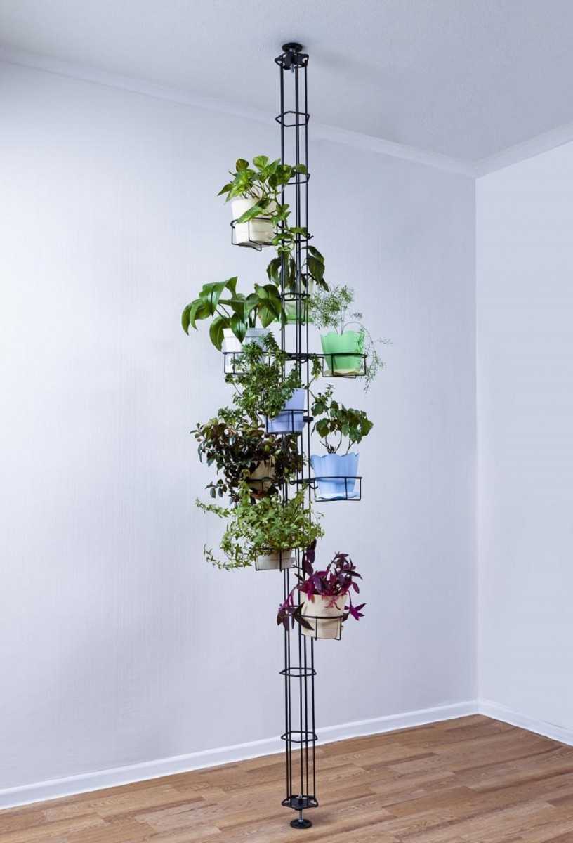 Важно размещать опоры так, чтобы цветы стояли на разной высоте, имитируя природную горку, что очень эффектно и красиво смотрится в интерьере
