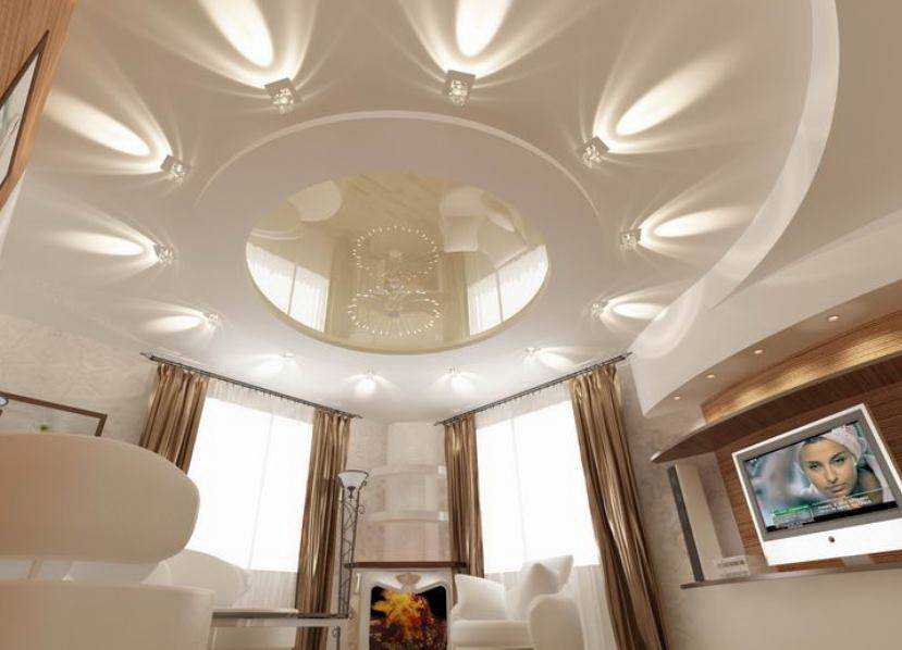 Красивые потолки из гипсокартона в квартире, как на фото, создаются с помощью фигур разной формы. Вариантов множество: