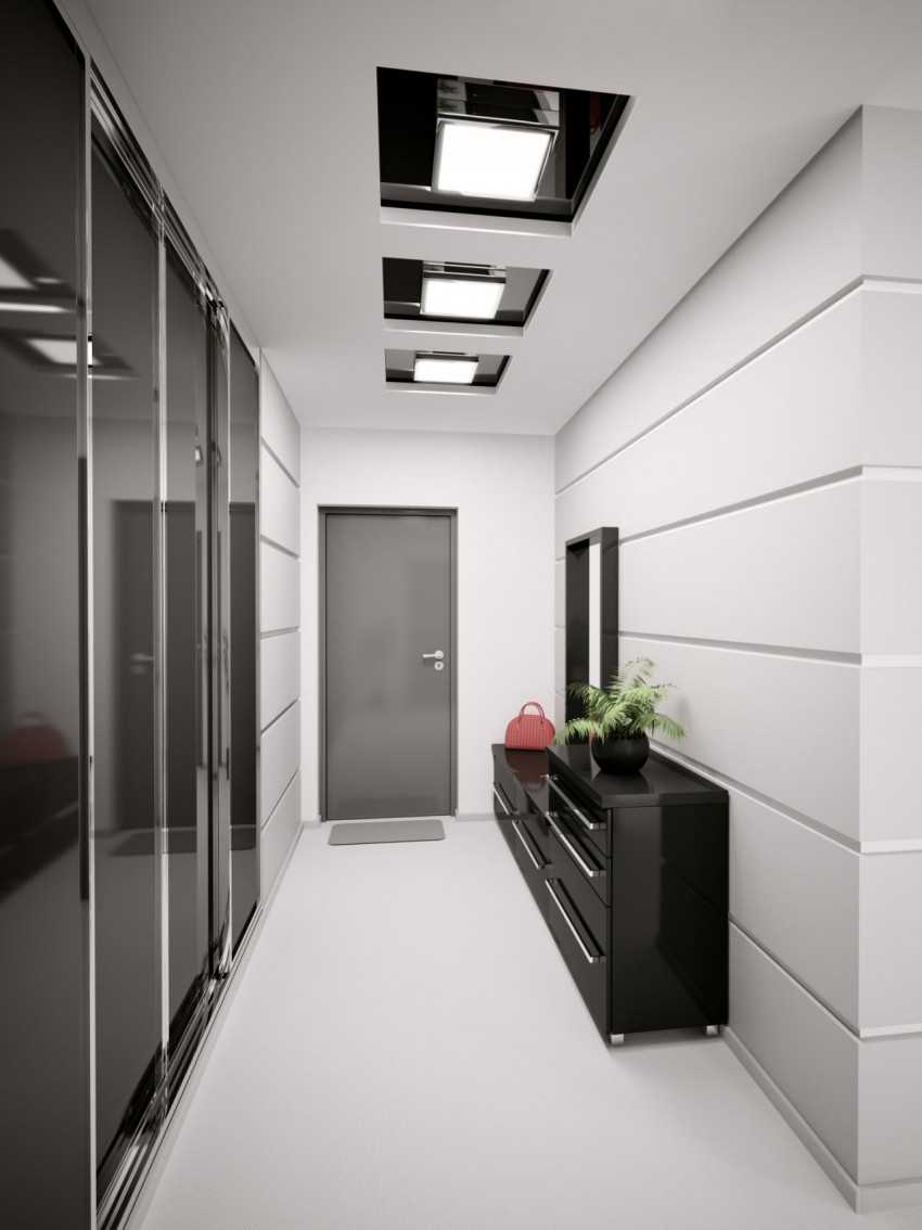 Потолки в прихожей могут разных видов и конструкций. Самыми распространенными являются: натяжной потолок, подвесной потолок и потолочное перекрытие.