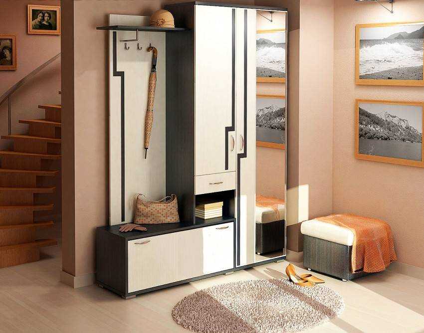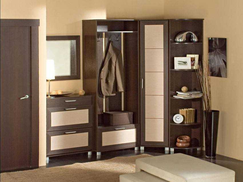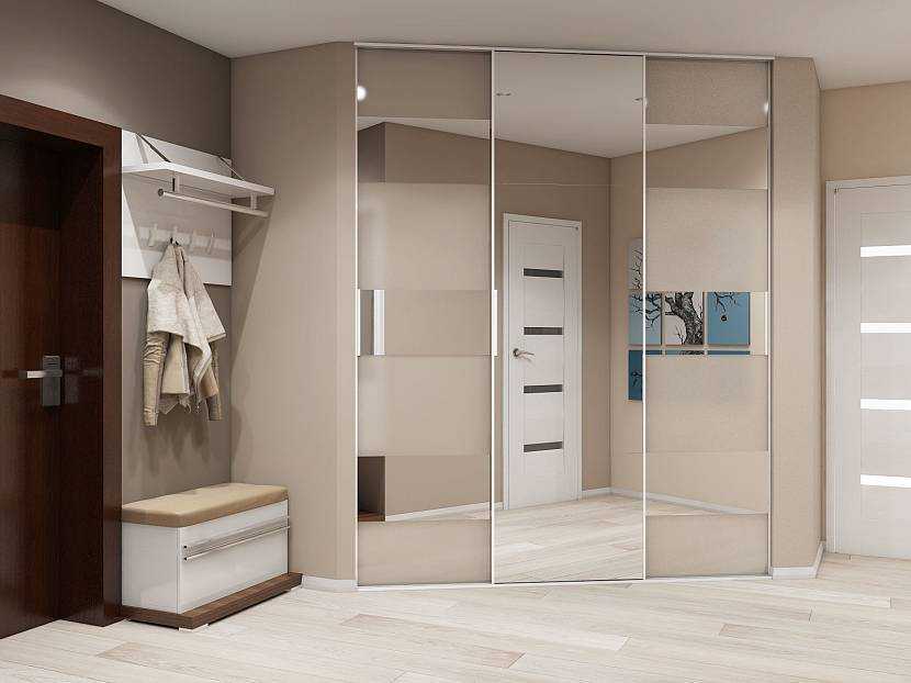 Чтобы сэкономить место в прихожей, на двери можно закрепить зеркало или же превратить обычный угловой шкаф в купейный, установив раздвижную систему.