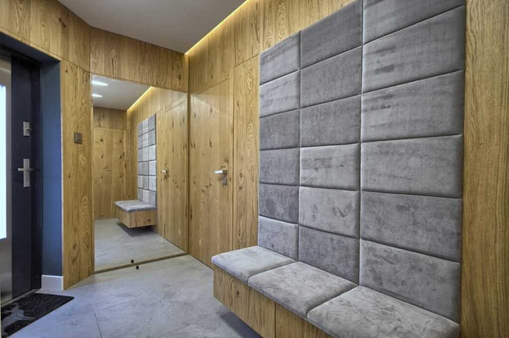 Панели в интерьере коридора – наиболее удачное решение. Их будто специально создавали для декора именно таких пространств. Отделка легко моется, проста в монтаже. Такой элемент, в случае порчи, не проблема заменить.