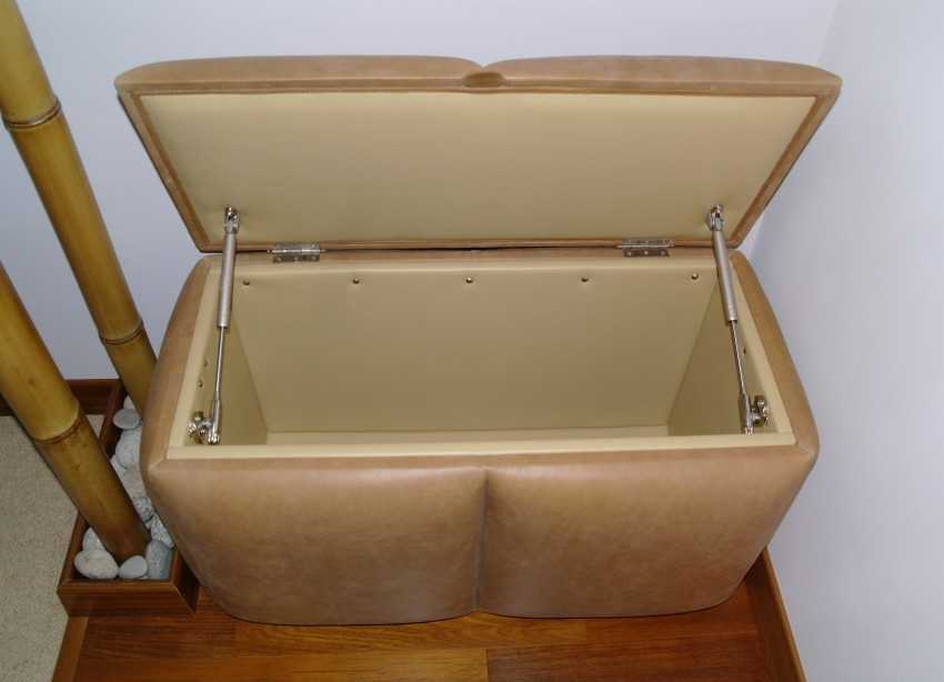 Популярностью пользуются функциональные и универсальные изделия, которые позволяют не только обеспечить удобное место для сидения, но и вместительную секцию для хранения вещей. Здесь встречается несколько модификаций: