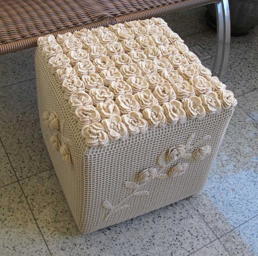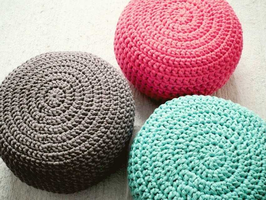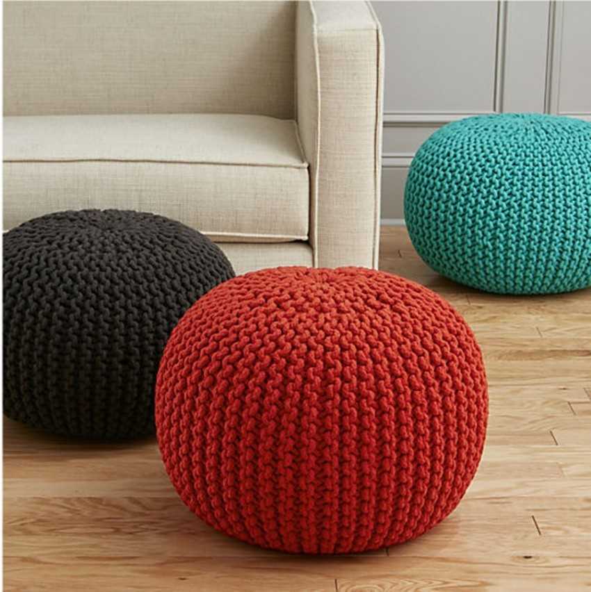 вязаные — такие дизайнерские пуфы станут настоящей изюминкой обстановки. Они выглядят тепло, по-домашнему, имеют мягкую конструкцию. Ее легко сделать и самому;