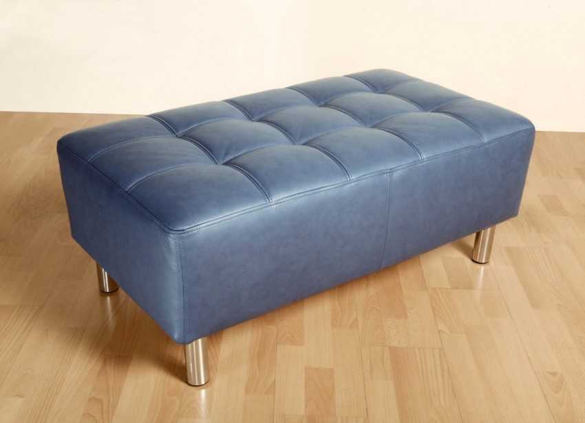 В гостиной чаще всего встречаются двойные пуфы, невысокие мягкие модели из кожи, текстиля или пенополиуретана, которые в основном используют, как подставку для ног.