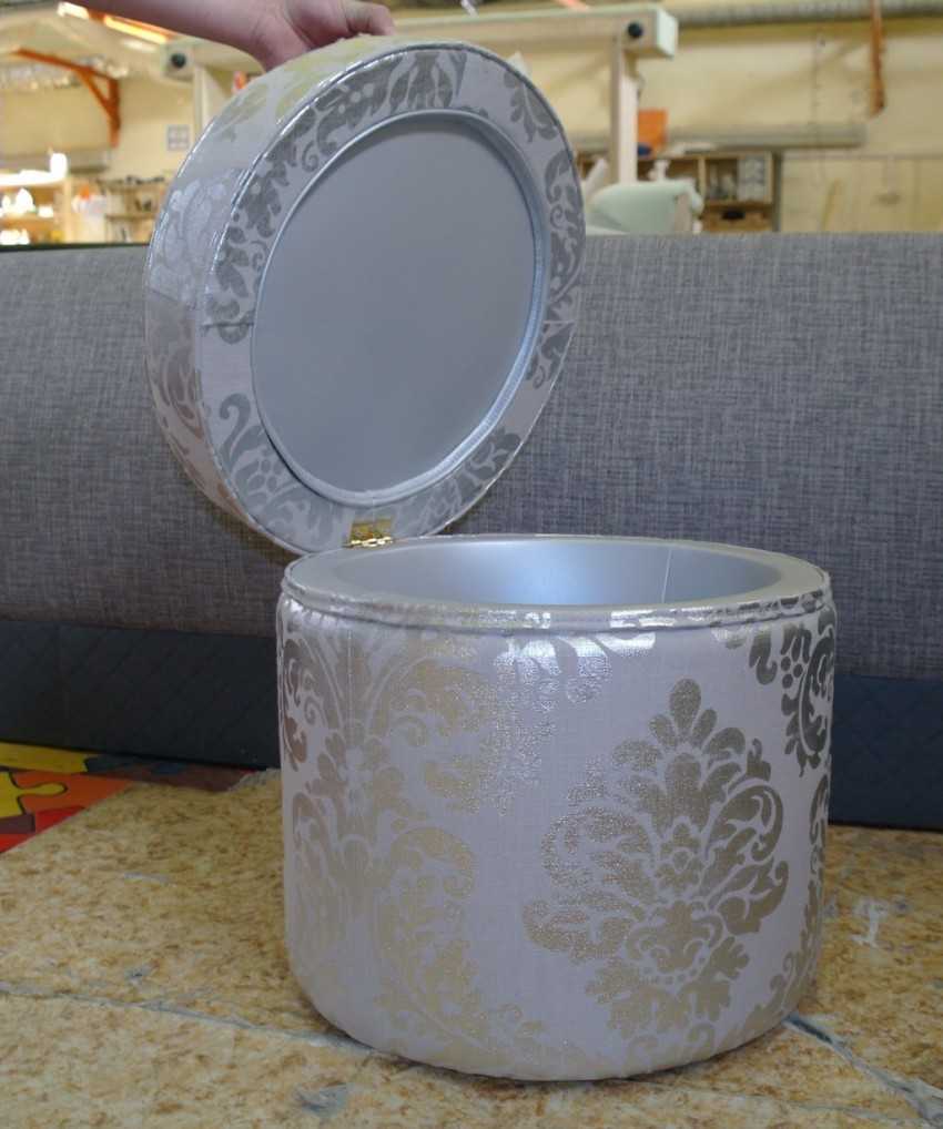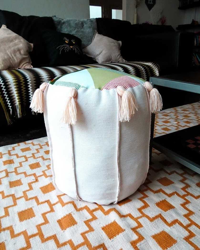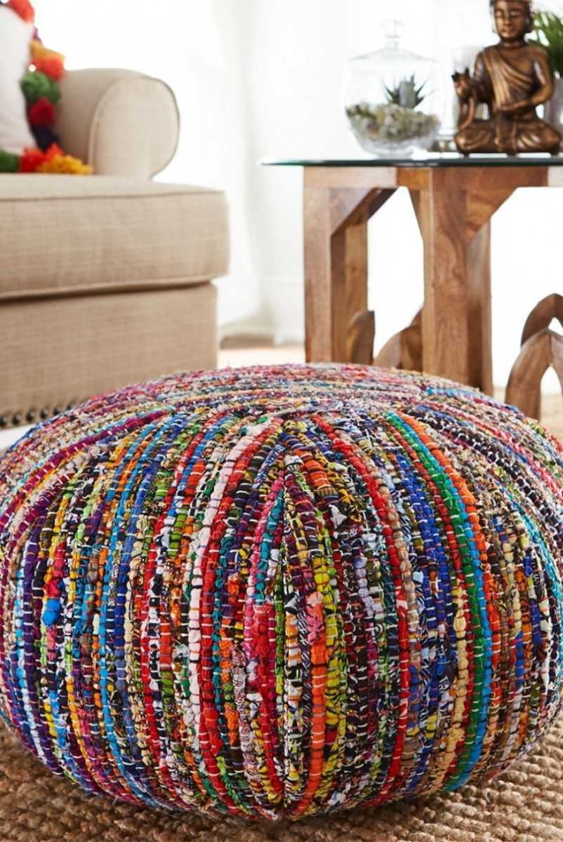 В итоге может получиться вот такой оригинальный и стильный круглый пуфик, как на фото, который украсит любую спальню или гостиную.